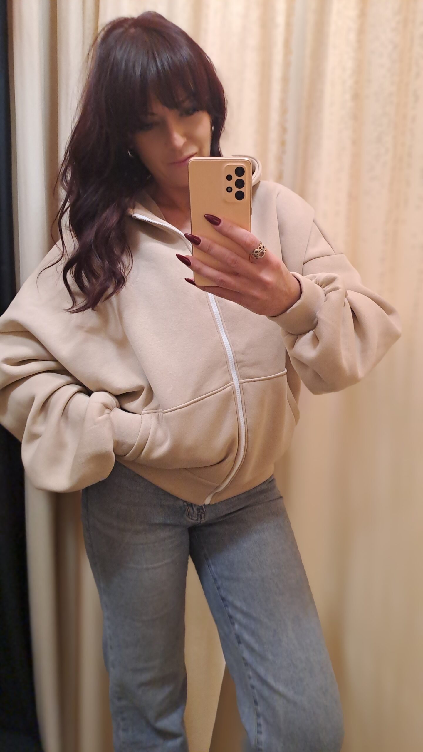 Skład: 95% bawełny i 5% elastanu , ta rozpinana bluza z kapturem i kieszeniami to hit jesiennej oraz zimowej kolekcji. Dostępna w modnych kolorach. Miękki, przyjemny w dotyku materiał otula ciało, a luźny krój zapewnia pełną swobodę ruchów i świetnie podkreśla luzacki, streetwearowy charakter stylizacji. Bardzo ciepła tkanina idealnie pasuje na chłodniejsze dni. Dzięki praktycznemu zapięciu na suwak możesz nosić ją na wiele sposobów — jako lekką narzutkę lub klasyczną bluzę z kapturem. Świetnie prezentuje się zarówno z jeansami, jak i bardziej sportowym dołem. Ta oversizeowa bluza w beżowym odcieniu to idealne połączenie wygody i nowoczesnego looku.