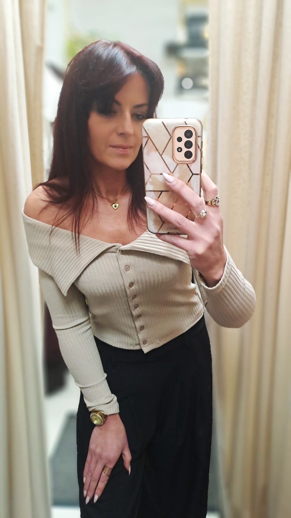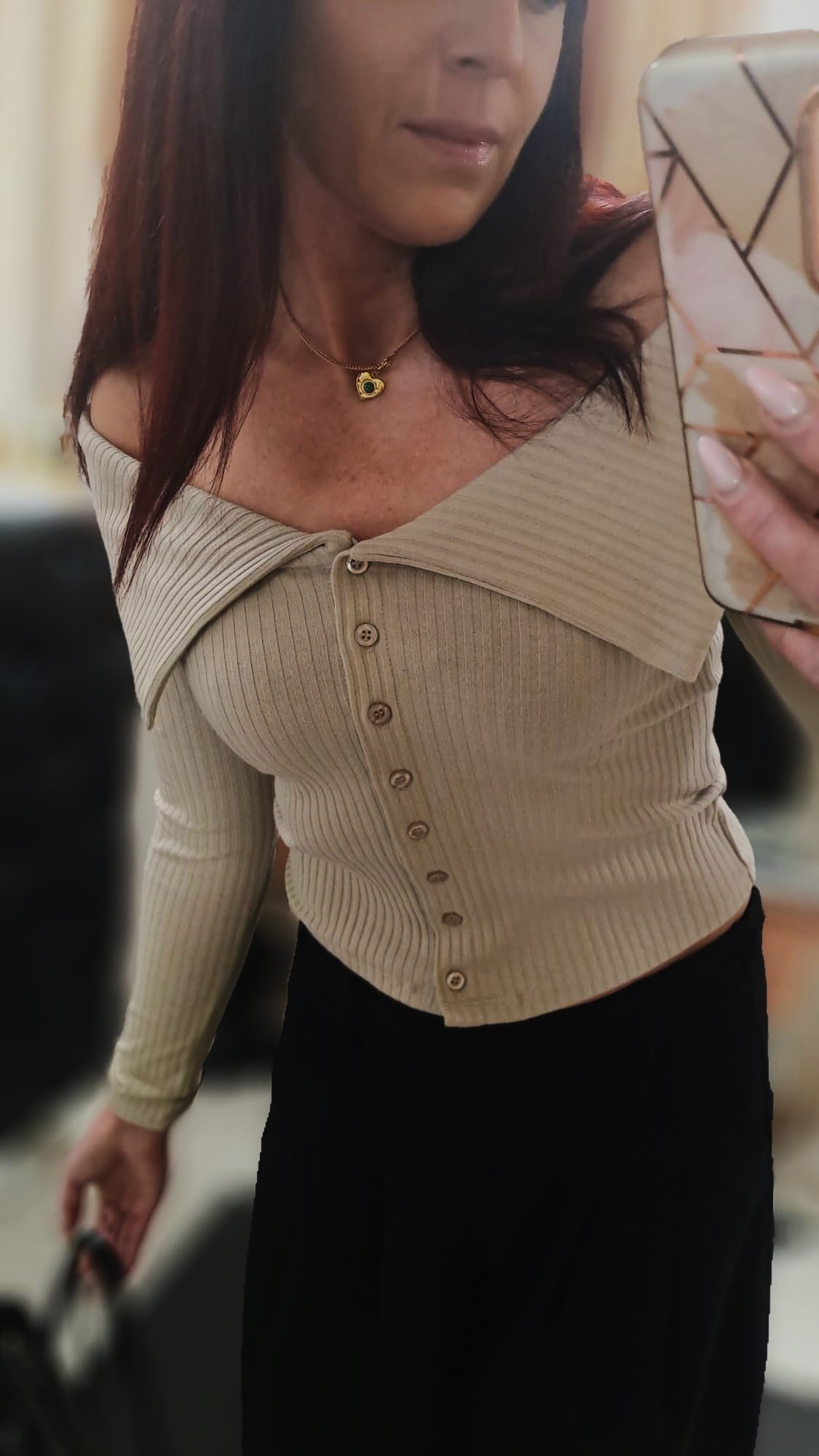 • dekolt: off-shoulder z szeroką zakładką