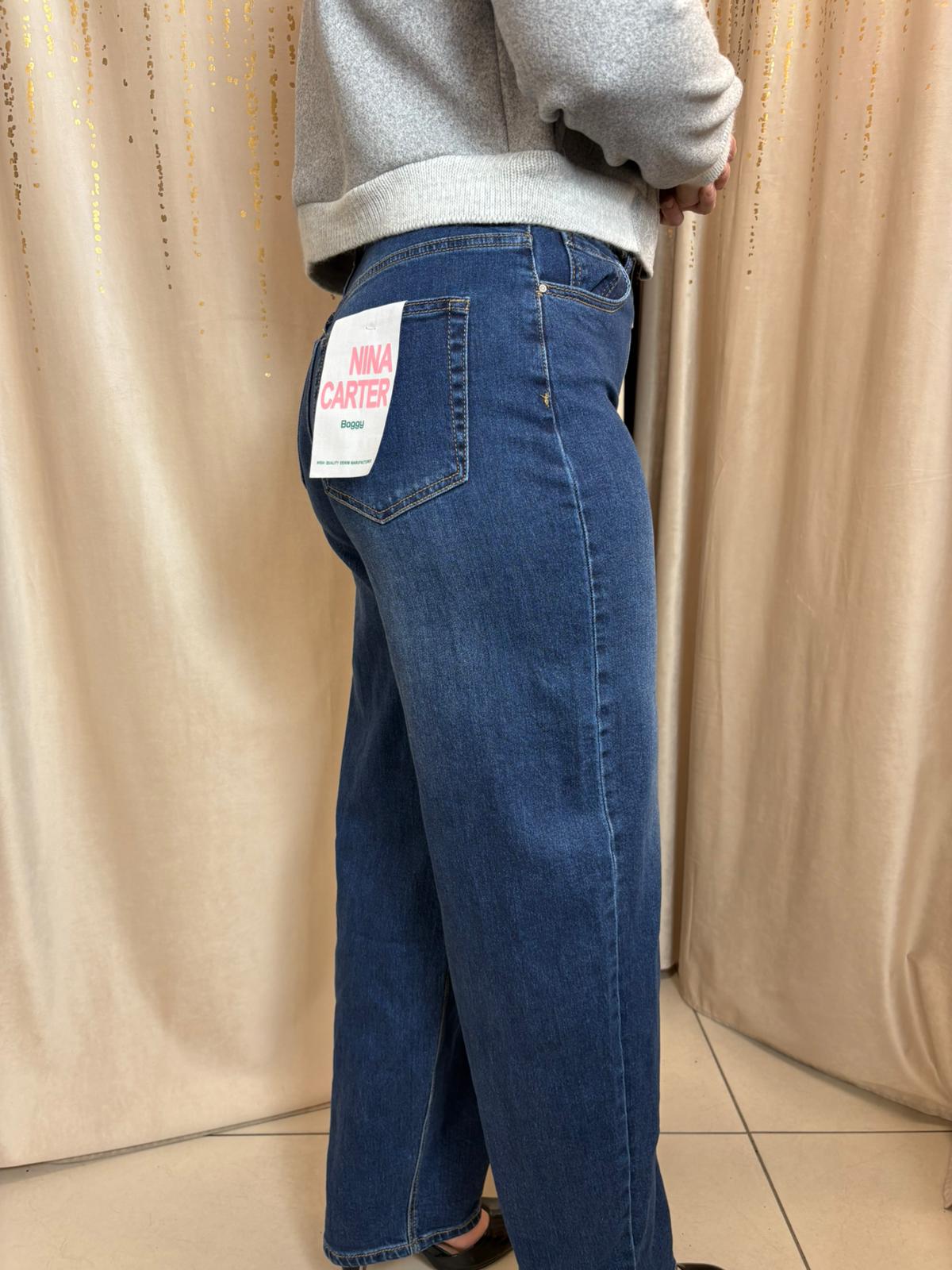 Model z wysokim stanem nie tylko pięknie podkreśla talię, ale również optycznie wydłuża nogi, dzięki czemu sylwetka zyskuje bardziej proporcjonalny wygląd. Szeroka nogawka układa się naturalnie na ciele, tworząc modny, lekko oversize’owy efekt, który dodaje stylizacji nowoczesnego wyrazu. Dodatkowo gładki, klasyczny denim z delikatnymi przetarciami sprawia, że spodnie są niezwykle uniwersalne, a tym samym łatwe do stylizowania — zarówno na co dzień, jak i na bardziej eleganckie okazje.
