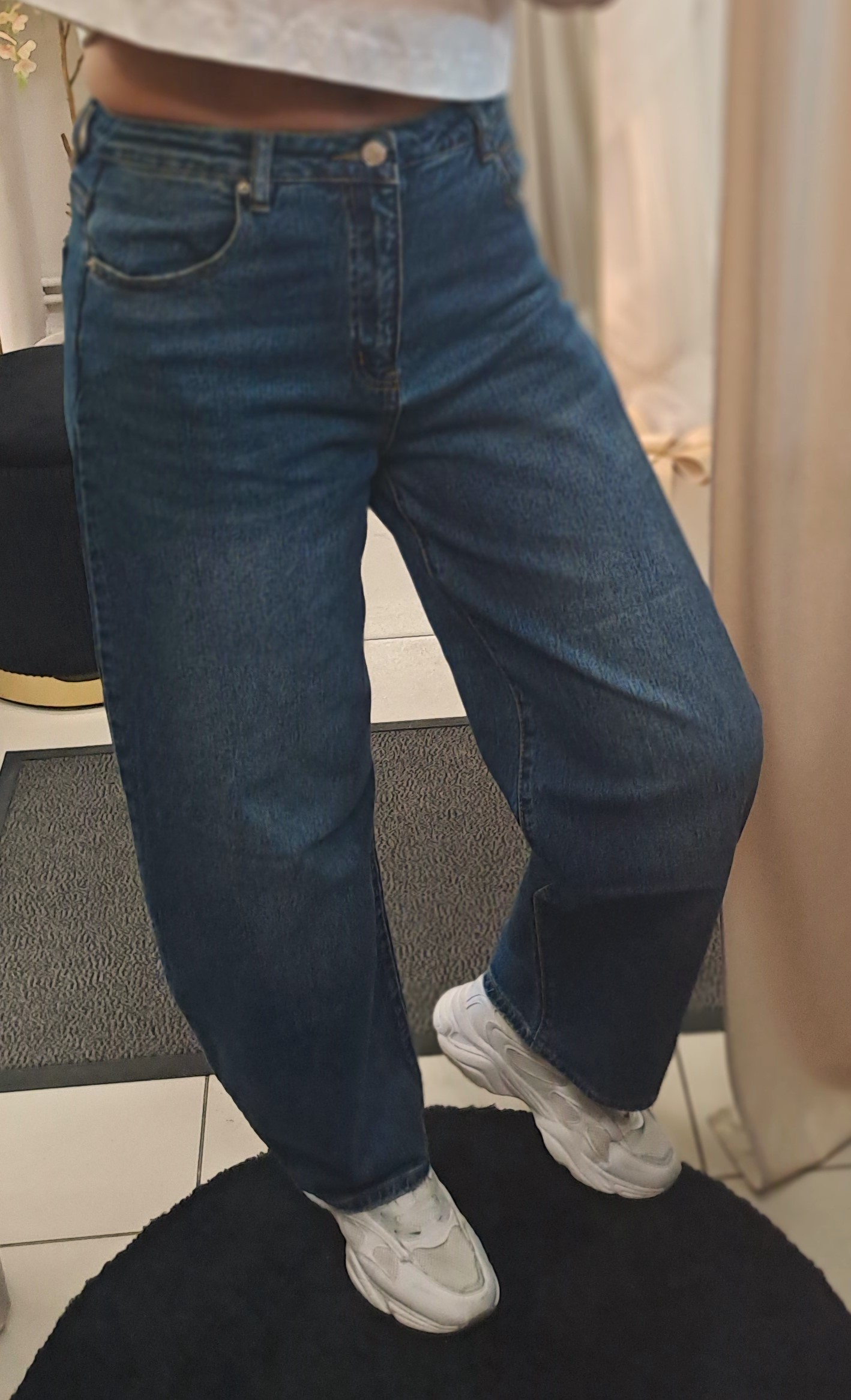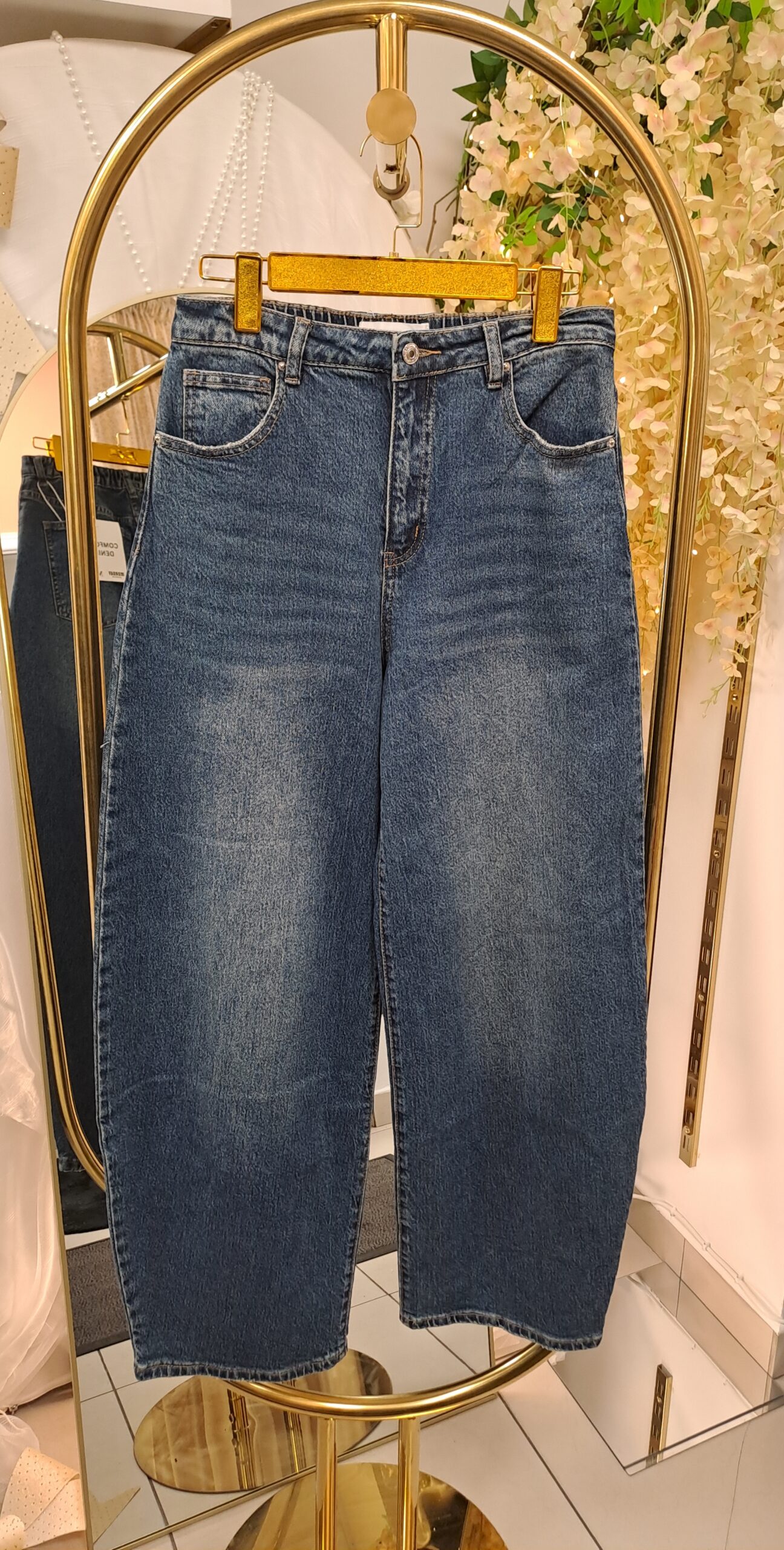 Ponadto klasyczny denim o jednolitym wybarwieniu z delikatnym cieniowaniem dodaje głębi kolorowi, dzięki czemu model jest niezwykle uniwersalny. Możesz zestawić go ze sneakersami oraz luźnym swetrem, tworząc codzienny look, albo połączyć z koszulą i botkami, uzyskując elegancki efekt.