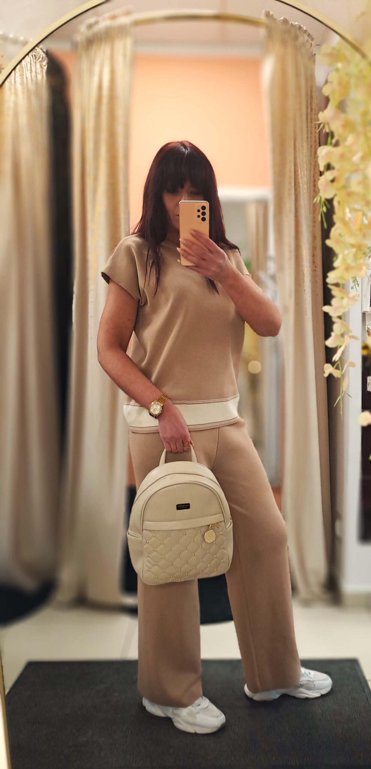 Materiał pięknie się układa, nie krępuje ruchów i sprawdzi się zarówno w codziennych stylizacjach, jak i w bardziej dopracowanych, casualowych zestawach. Komplet idealny na co dzień, do pracy w trybie smart casual, na podróż czy weekendowy spacer. Można nosić go razem lub osobno, tworząc wiele uniwersalnych stylizacji. To propozycja dla kobiet ceniących wygodę, jakość i ponadczasowy styl.
