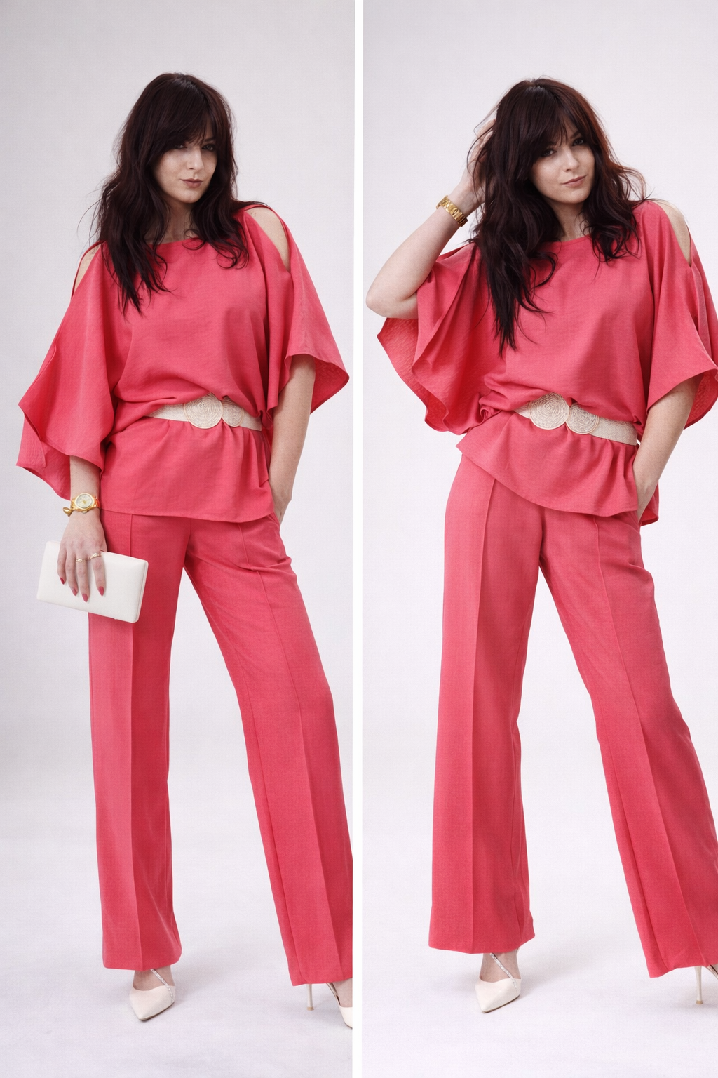 Komplet Mavi ze stylową zwiewną bluzką i prostymi spodniami to idealny wybór na wyjątkowe okazje. Pasek nie należy do zestawu !!