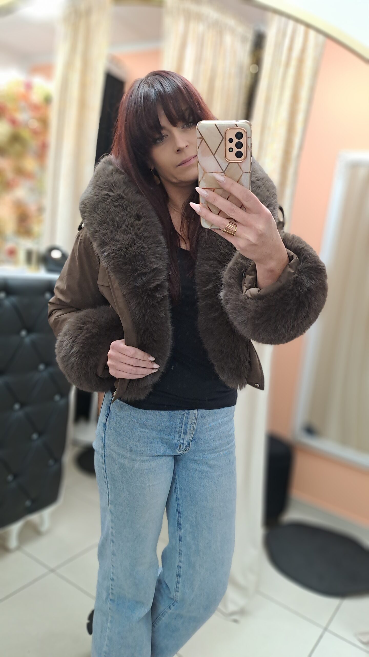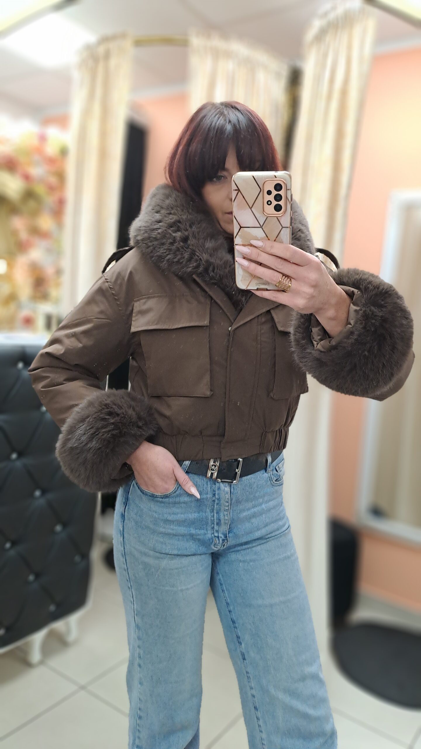 Kurtka bomberka z odpinanym futerkiem to wyjątkowy element garderoby, który łączy w sobie styl, wygodę i funkcjonalność — idealny wybór na chłodniejsze dni. Jej ponadczasowy krój sprawia, że świetnie sprawdzi się zarówno w codziennych stylizacjach, jak i bardziej eleganckich zestawach. Dzięki starannie dobranym materiałom i modnemu odcieniowi brązu, bomberka przyciąga uwagę i podkreśla charakter każdej stylizacji.