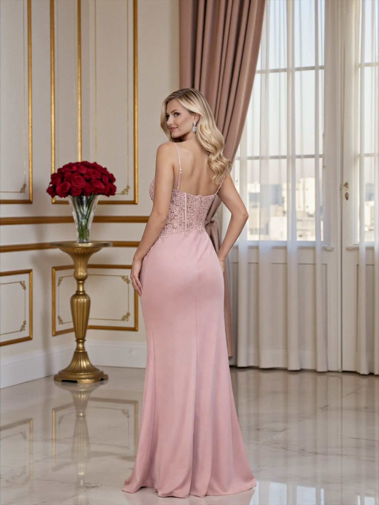 Poznaj naszą sukienkę wieczorową Omoda ,która jest w delikatnym, pastelowym odcieniu błękitu lub różu.