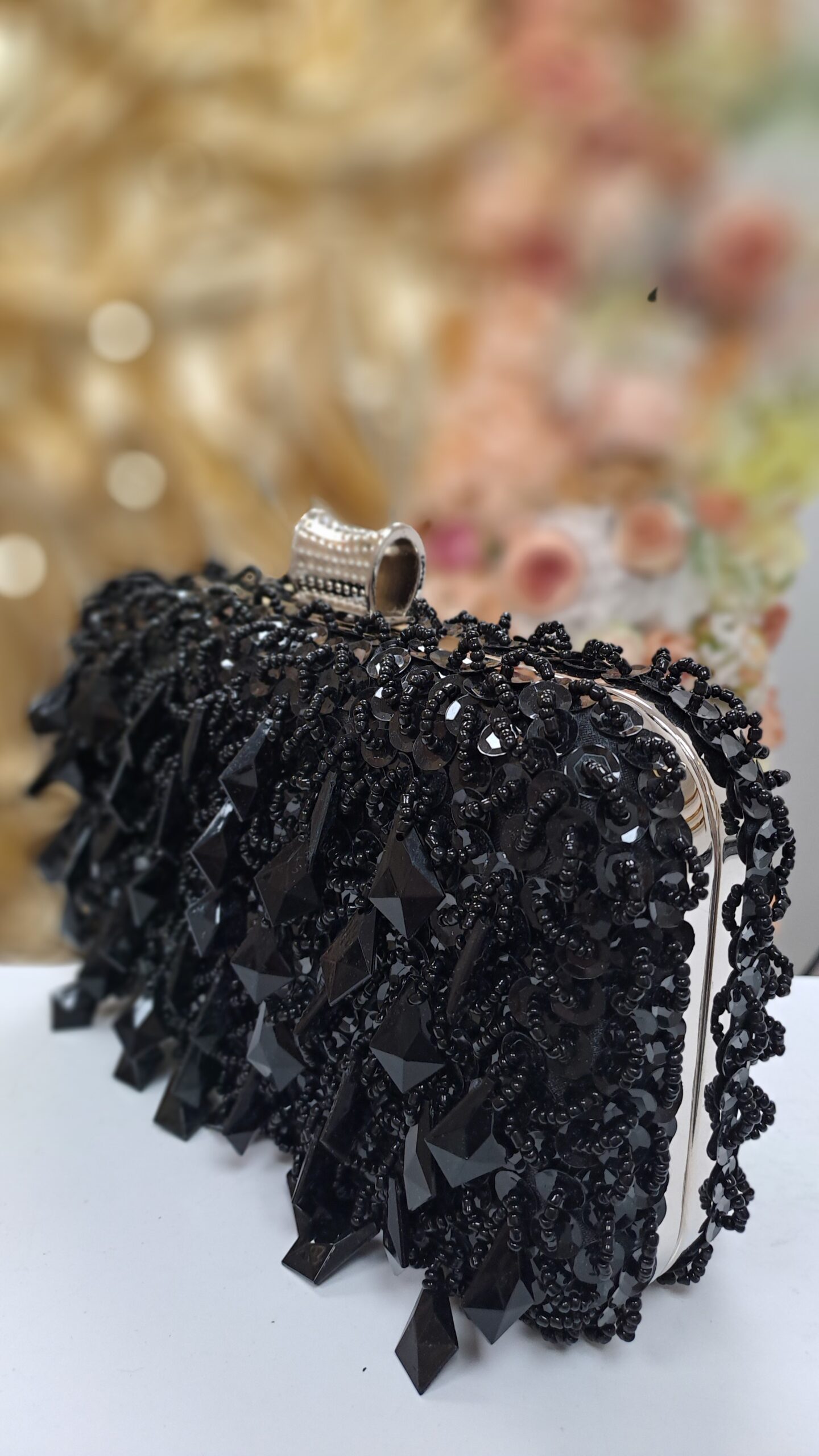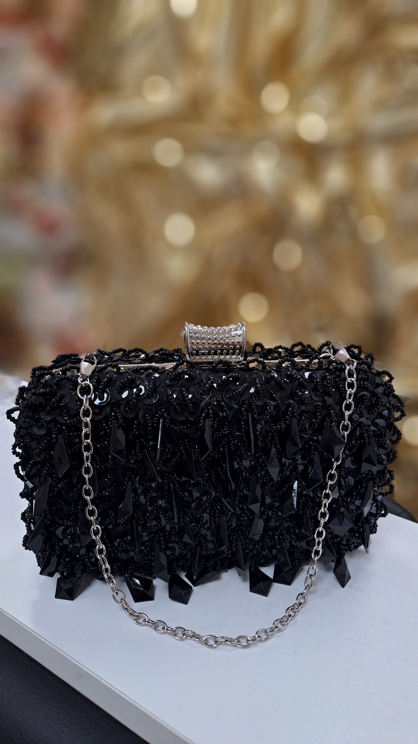 Czarna kopertówka z cekinami i kamieniami doskonale komponuje się zarówno z klasycznymi sukienkami, jak i nowoczesnymi zestawami wieczorowymi. To uniwersalny dodatek, który może stanowić punkt wyjścia do stylizacji na różne okazje – od eleganckich kolacji, przez imprezy firmowe, aż po wyjątkowe przyjęcia okolicznościowe.